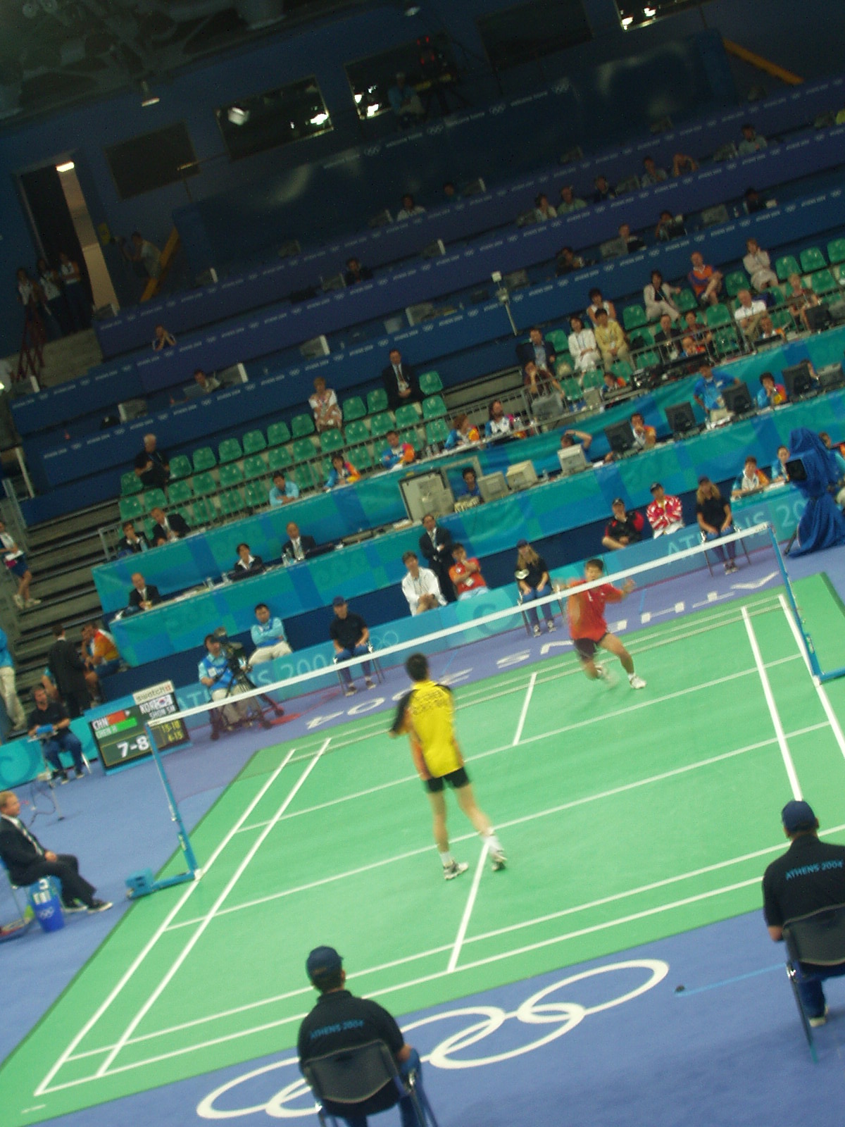 The Chinese supporters were out in force at the Goudi Olympic Hall for the badminton contests. They only appeared to have one, rather regimented chant, which to my ears sounded like "Go home, China!"